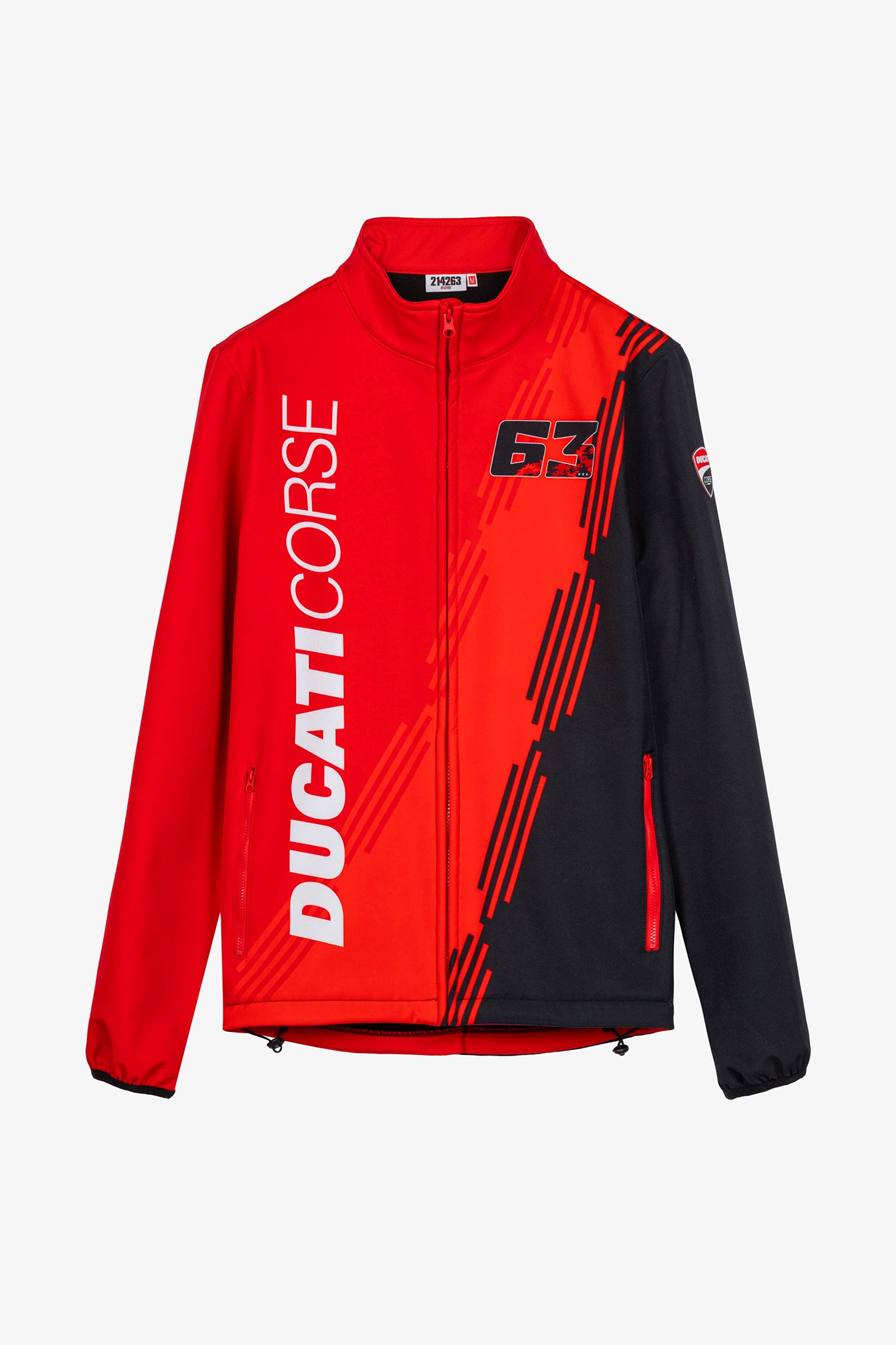 Softshelljacke aus Polyester aus der Dual Ducati Corse Kollektion von Francesco Bagnaia. Auf der Vorderseite befinden sich die Nummer 63 und das Ducati Corse-Logo auf einem grafischen Muster, ein durchgehender Reißverschluss und zwei Fronttaschen. Auf der Rückseite befinden sich die Nummer 63 und „GoFree”, während auf dem Ärmel das Ducati Corse-Wappen zu sehen ist.Waschen: Medium Waschen in kaltem Wasser ; Nicht bleichen ; Keine Trommel ; Bügeln Max 110 ; Nicht chemisch reinigenKomposition: 100%POLYESTER