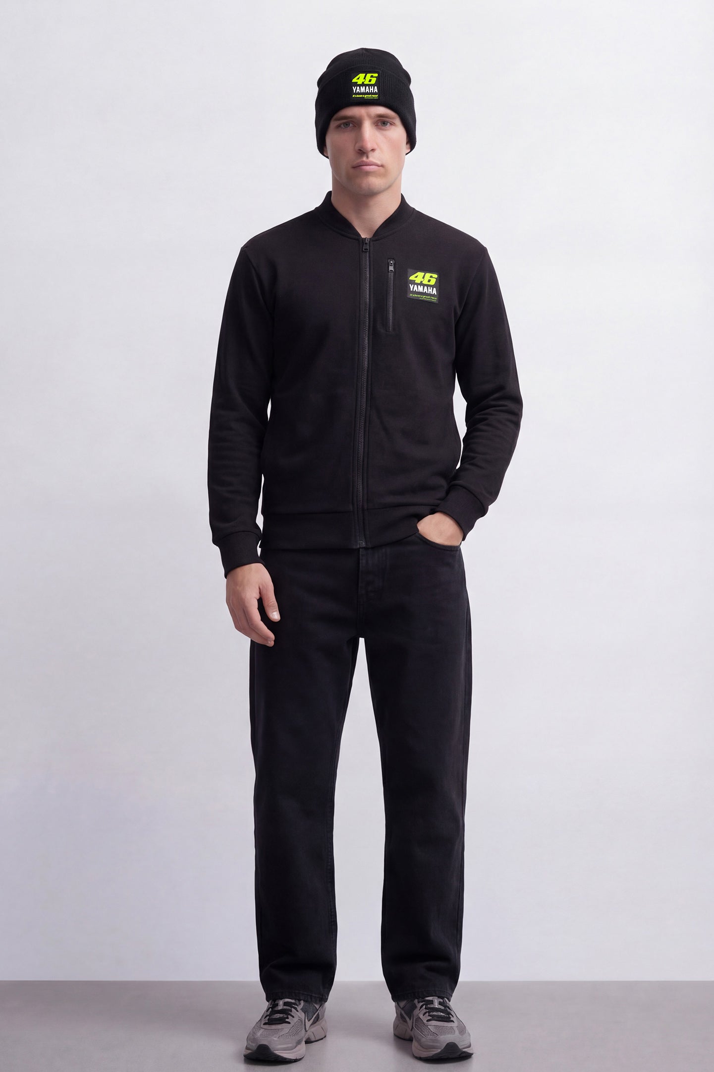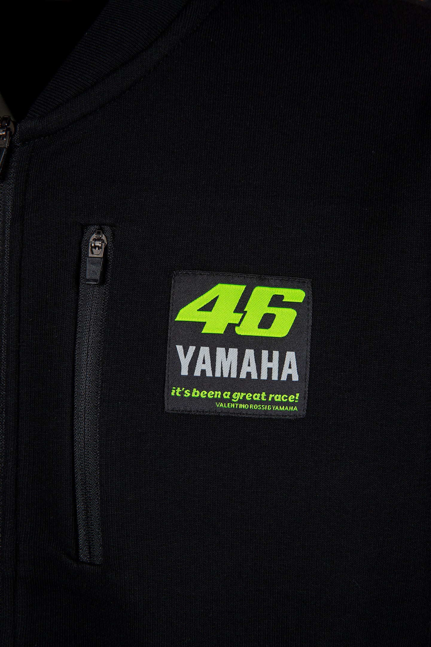 Sweatshirt from Valentino Rossi's exclusive VR46 Yamaha Ambassador collection. Made from cotton and polyester with a regular fit and front zip closure. The front features Valentino Rossi's race number 46, the Yamaha logo and the quote 'It's been a great race'. It has two pockets at the waist and a chest pocket. The number 46 and the Yamaha logo are repeated on the back.