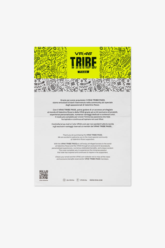 When you purchase the VR46 Tribe Pass 2026, you will receive an exclusive kit dedicated to Valentino Rossi's most enthusiastic fans.