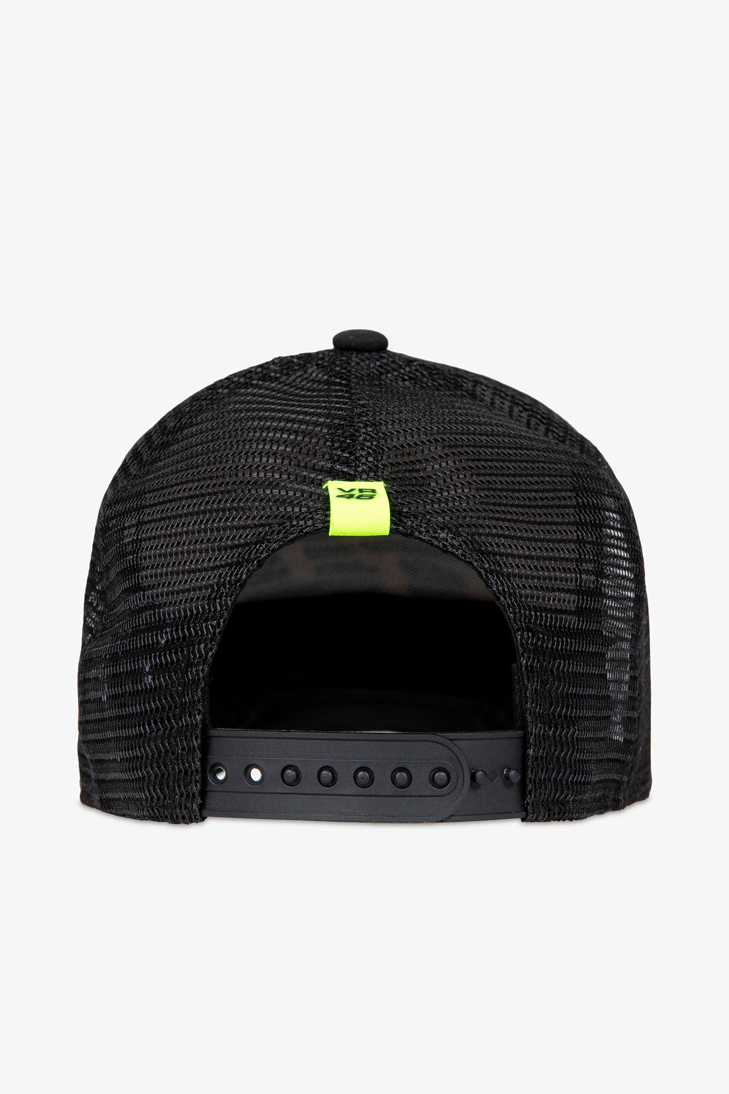 E-FRAME Trucker cap from the exclusive collaboration between VR46 and New Era. Made from polyester and elastane, it features a large embroidered number 46 on the front and contrasting piping on the peak. The back features breathable mesh and a small patch with the VR|46 logo, while the side features the iconic New Era logo embroidery. Adjustable at the back.