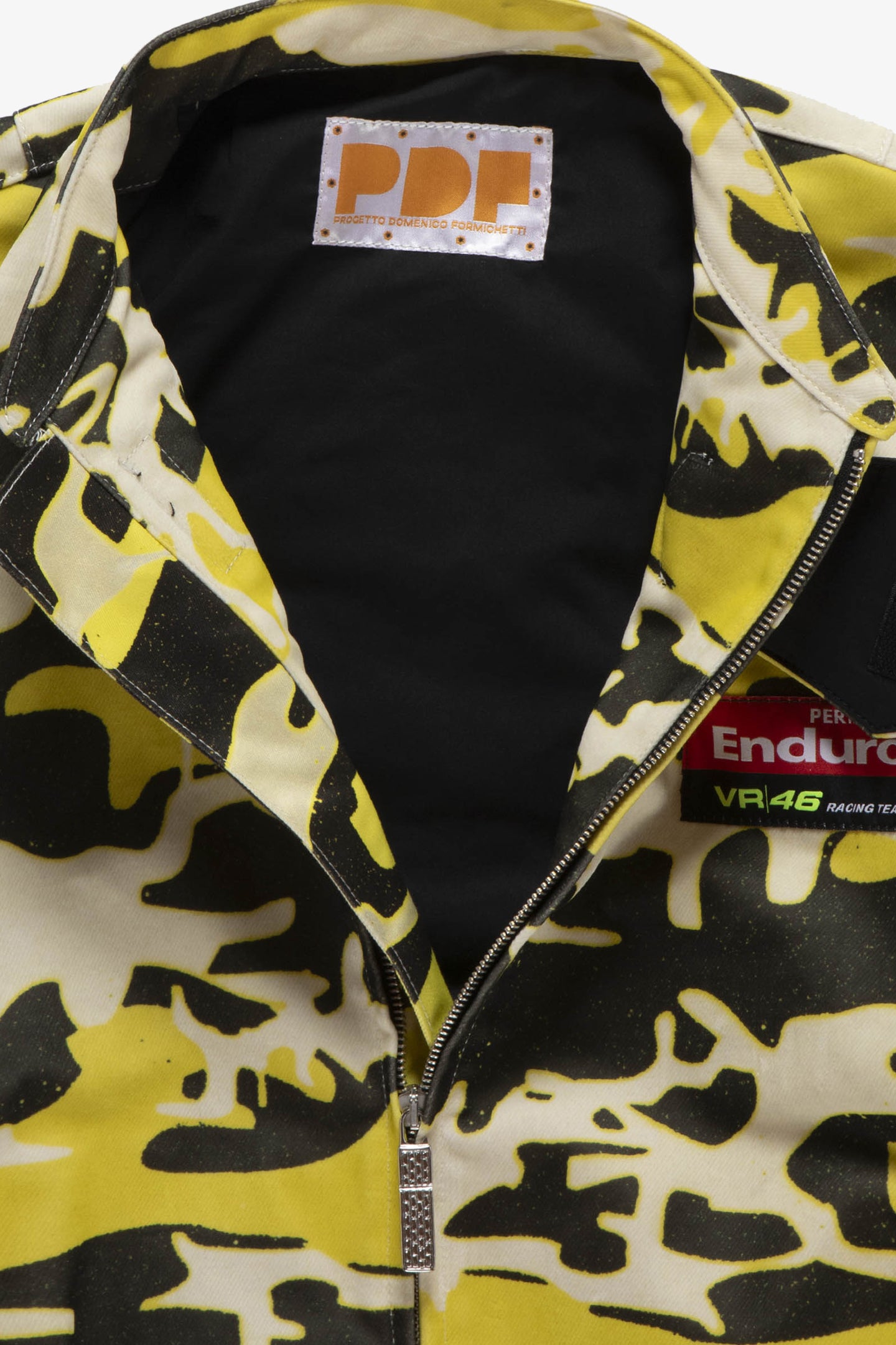This exclusive capsule collection, the result of a collaboration between the Pertamina Enduro VR46 Racing Team, Refrigiwear and PDF, is available only in selected shops. A cotton bomber jacket featuring a striking camouflage pattern and a full-length zip fastening. With a modern cut, the front features the Pertamina Enduro VR46 Racing Team patch, the embroidered Refrigiwear logo and a fastening bearing the PDF logo – the Domenico Formichetti project. There are zips on the sleeves, whilst the inside features a pocket. On the back is Refrigiwear’s charming mascot in a biker version with a flocked finish.